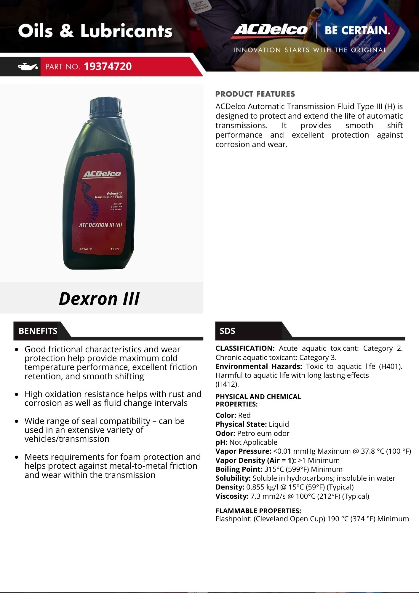 - Meets requirements for foam protection and helps protect against metal-to-metal friction and wear within the transmissions.