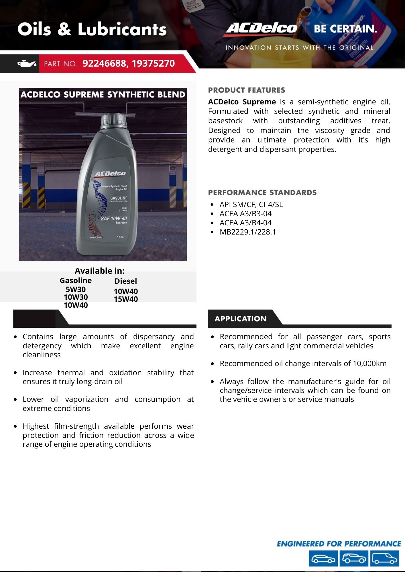 - Friction-modified for improved fuel economy.